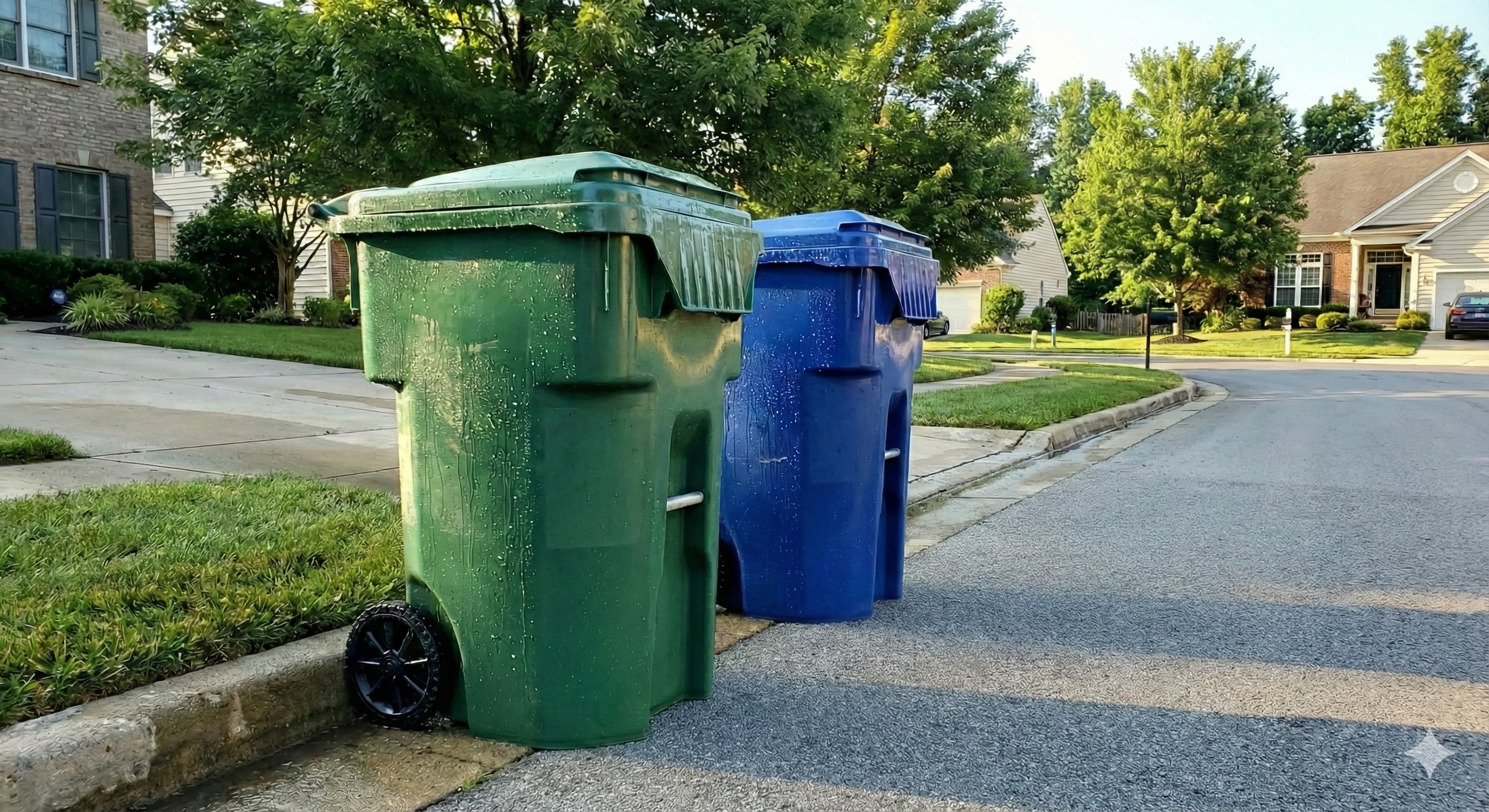 You come home to fresh, clean bins ready to be rolled back into your garage.